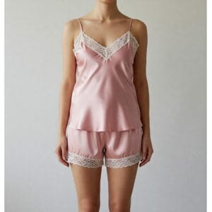Permita-se sentir a maciez da seda e a beleza da renda com o nosso Pijama Curto de Seda com Renda Chantilly. Uma peça que transforma suas noites em momentos de puro prazer e elegância.